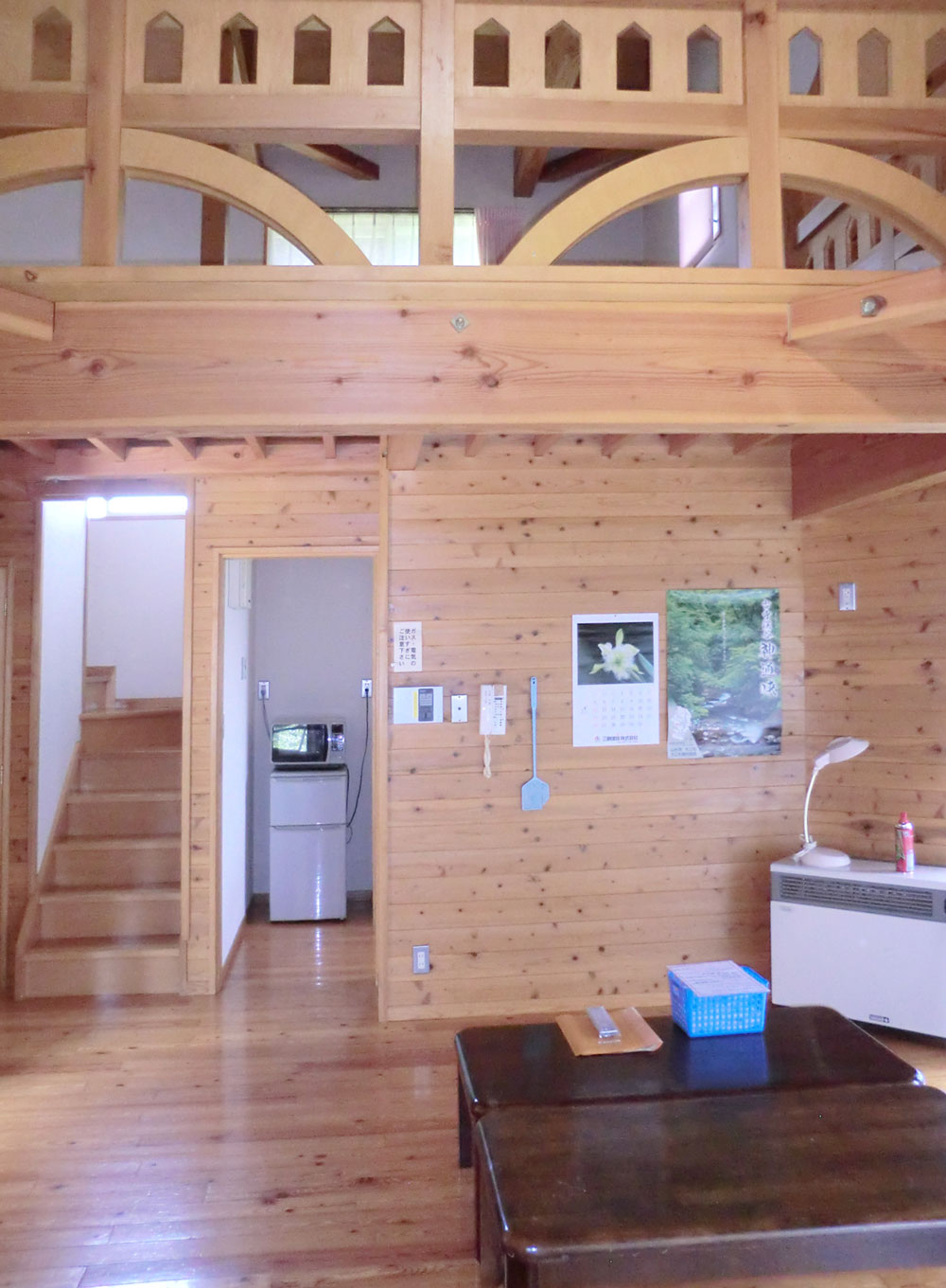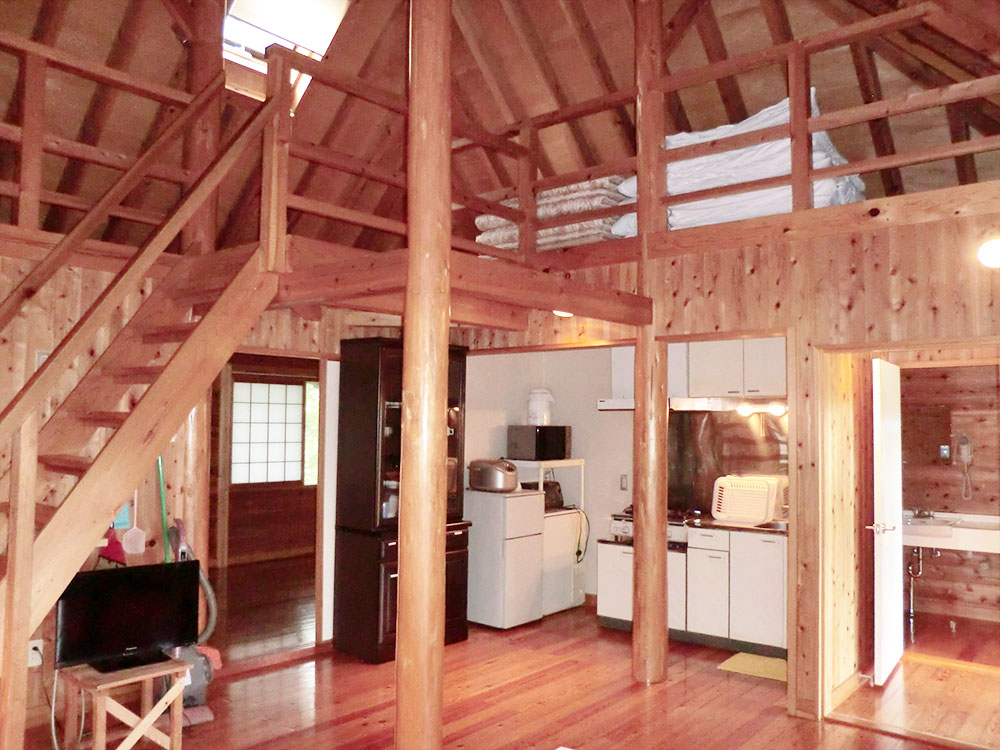 バス・トイレ付き。お食事は備え付けの設備(炊事道具完備)での自炊になります。